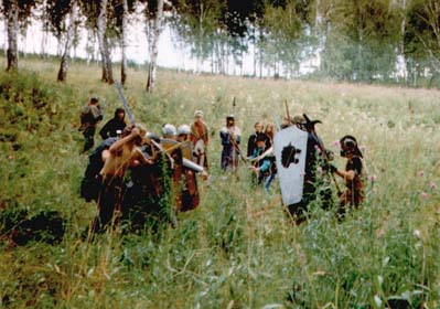![]() | Рассказал Илья Фисюк: "Пришли нигеры, дракониды и еще бог знает кто обиженные Демоном Теней(ваш покорный слуга) и остатками империи(далее ОИ) вместе с черным отрядом(далее ЧО). И решено было устроить бой 6 на 6. Слева Я(демон теней) кто-то был из ЧО и все кто с щитами дверьми и в шлемах - ОИ. Бой закончился поражением нападающих и глобальной пьянкой энтийской воды (раненых у нас было порядком, а она из 0 поднимала)." | ![]() |