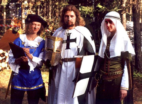 ![]() | Слева направо - писарь отеля Ногарэ, тевтонец (Шеннар, Рига), Жанна Бургундская (Майя, Рига). | ![]() |