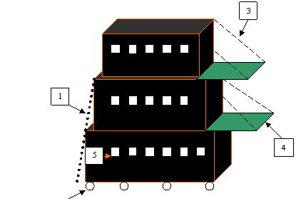 Мое предложение по производству гелеполя будет таким: делаем первый этаж по принципу винеи, только крышу делаем так чтобы на нее можно было встать нескольким людям, второй этаж делаем по конвертно-тканевому методу (это если нужно два этажа, а если нужно больше то по способу первого этажа), ну, а дальше и так все понятно (см. рисунок). Применялись для безопасного подхода к стене или башне крепости, после чего опускался трап и уже с него на стену или башню попадали бойцы осаждающей армии. Верхний этаж чаще всего делали без крыши, на нем располагались стрелки. Еще═ внутри═ гелеполя находились сосуды с водой или землей для тушения возникших пожаров, покрыт весь гелеполь железом и мокрой кожей, что защищало людей находящихся внутри от стрел и смолы.